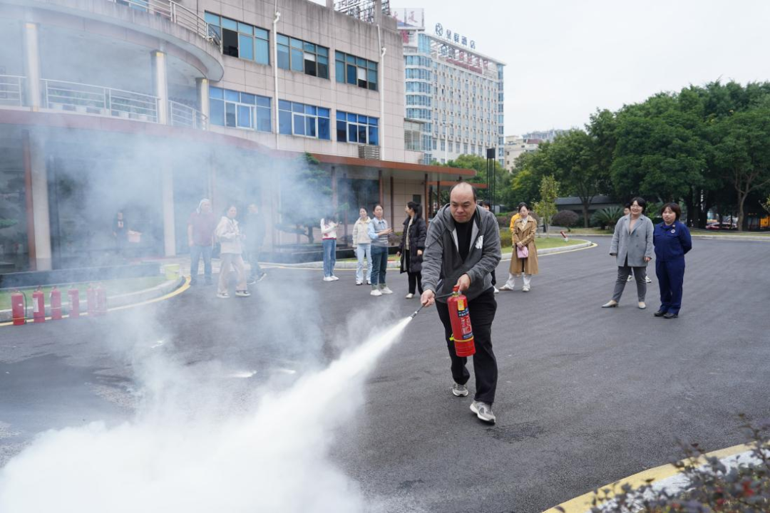 此次培训还开展了应急疏散演练,模拟现场灭火。在疏散演练过程中,全体员工严格按照演练统一要求,将毛巾打湿捂住口鼻,弯腰快步从三楼办公楼内撤离,所有人员均安全撤离到指定地点。随后杨丽华向大家介绍了灭火器的工作原理,对灭火器的使用步骤进行了讲解与说明,大家积极参与实操演练,拿起灭火器按照提、拔、 握、压四个步骤正确使用灭火器。演练达成预期效果。