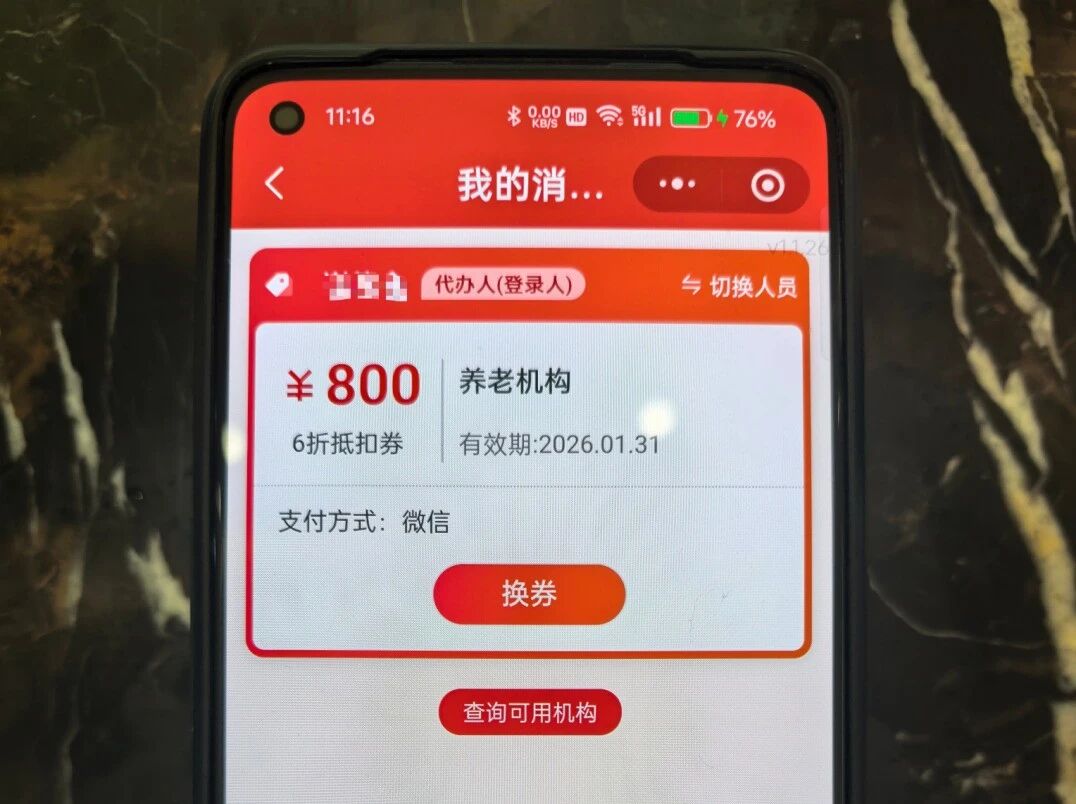 “每月床位费和护理费3700元,现在每月能省800元,一年就是近万元。”谢女士边说边展示着手机上抵扣券到账的通知,“这不仅减轻了经济负担,更让我们感受到党和政府对失能老人家庭的关怀。”