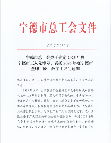 集团下属企业金泰公司护理管家部再次获评“宁德市工人先锋号”