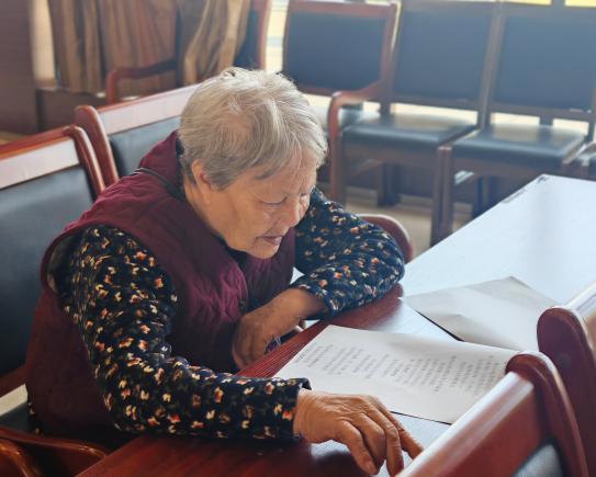 老人们也格外珍惜这段学习时光,课堂上认真跟读、反复练习,态度一丝不苟。在“小老师”们的悉心教学下,从最初羞涩轻声开口,到后来自信大声诵读,他们的眼神越发从容,脸上满是欢喜与满足。这场跨越年龄的朗诵之约,不仅丰富了老人们的精神文化生活,更用诗意与温情点亮了晚年岁月。