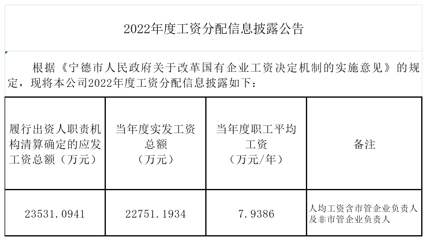 2022年度工资分配信息披露公告